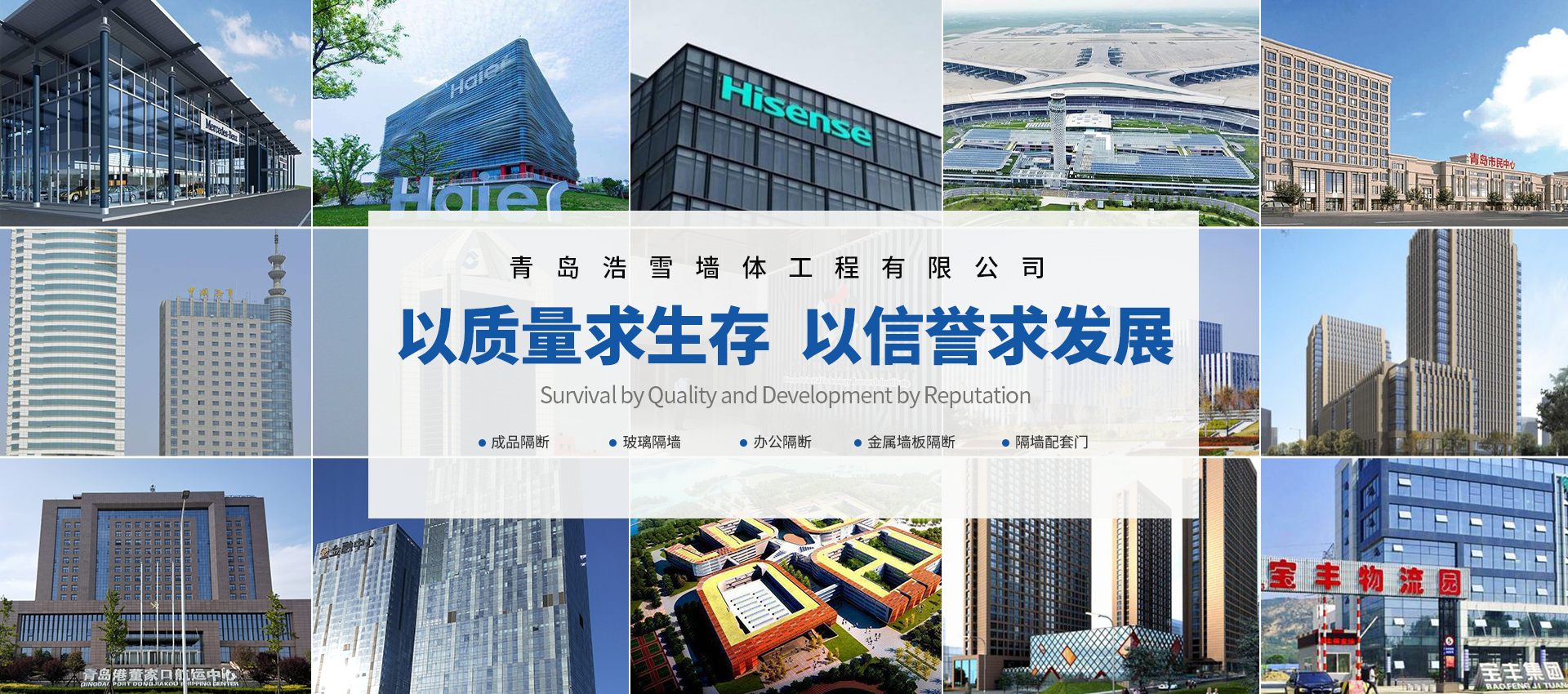 青島浩雪墻體工程有限公司,是專業從事成品隔斷、玻璃隔墻、辦公隔斷、等產品的研究、設計、安裝、售后及服務于一體的專業化公司。公司自成立以來,不斷引用國外的高端技術,配之以更加人性化的設計,推出更加美觀,更加經濟,更加適用的優質產品。加之專業的人才隊伍,更加使我們時刻走在同行業的前列。公司聚集了大量多年從事本行業的技術專業人才,為寫字樓,廠房,銀行,商場,辦公樓,醫院,機場,企事業單位提供專業的設計,...
